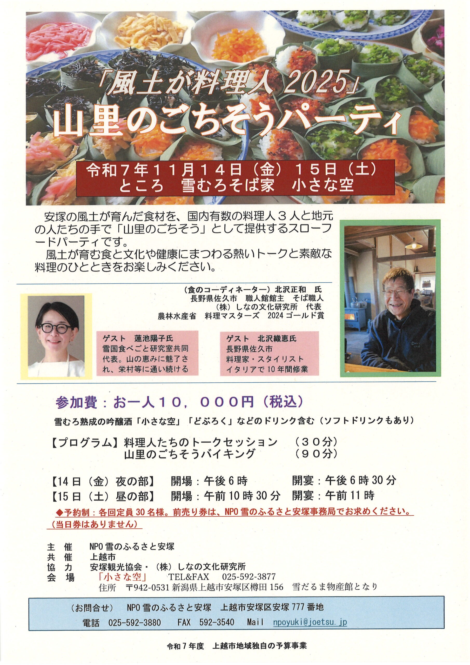 (14(金)夜、15(土)昼に山里のごちそうパーティ(予約の方のみ)を行います)